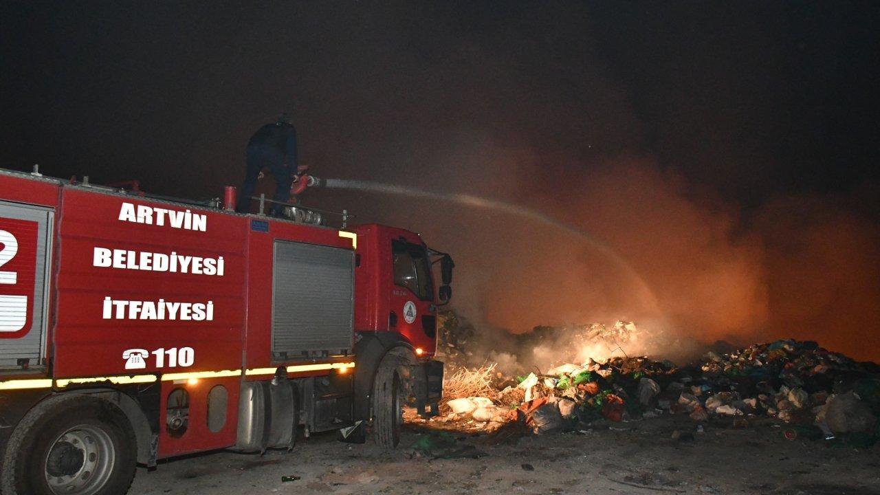Artvin'de, belediyeye ait vahşi depolama alanı ve çöp döküm tesisinde metan gazı patlaması sonucu yangın çıktı. Ekiplerin yangını söndürme çalışmaları sürüyor.