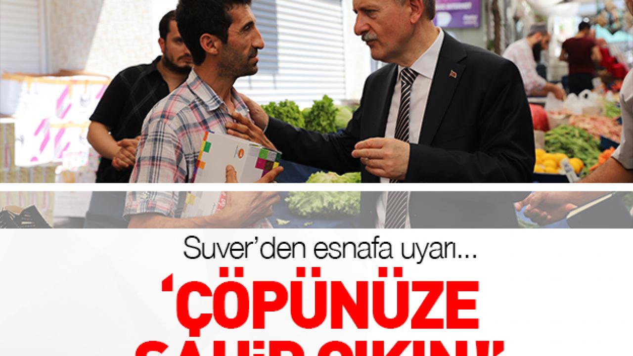 Pazarcı esnafı ile görüşen Suver'e esnaf şikâyetlerini söyledi. Pazarcı esnafını akşam olduğunda çöpleri dağıtmadan kenara koymaları gerektiğini hatırlatan Suver, “Pazarlarımızda çöpler düzenli olarak toplanıyor. Biz bütçemizin dörtte birini çöp toplanması için harcıyoruz. Fatih'te 7 günde 11 pazar kuruluyor. 430 bin olan nüfusumuza göre İller Bankası'ndan yardım alıyoruz. Oysa hizmet ettiğimiz insan sayısı 2 milyonu geçiyor. Bundan dolayı pazarcı esnaf kardeşlerimize diyoruz ki çöpünüze sahip çıkın, onu güzelce poşetlere koyun akşam erken saatte çöpçülerimiz görevini yapsın” diye konuştu.