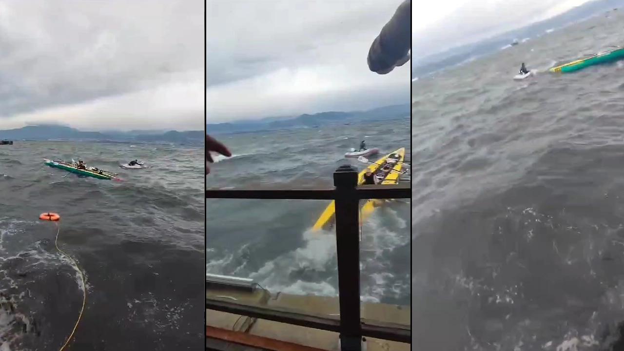 Kocaeli'de etkili olan kuvvetli rüzgar ve yağış, İzmit Körfezi'ne açılan kanoculara zor anlar yaşattı. Kanoları alabora olan sporcular, can simidiyle kurtarıldı.