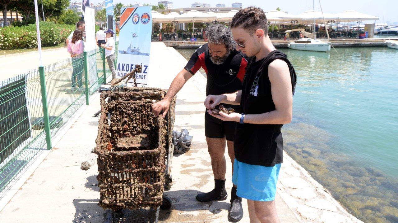 DHA- Mersin'de Çevre Haftası kapsamına gerçekleştirilen deniz dibi temizliğinde çanak anten, market arabası, halat, lastik ve plastik atık çıktı.