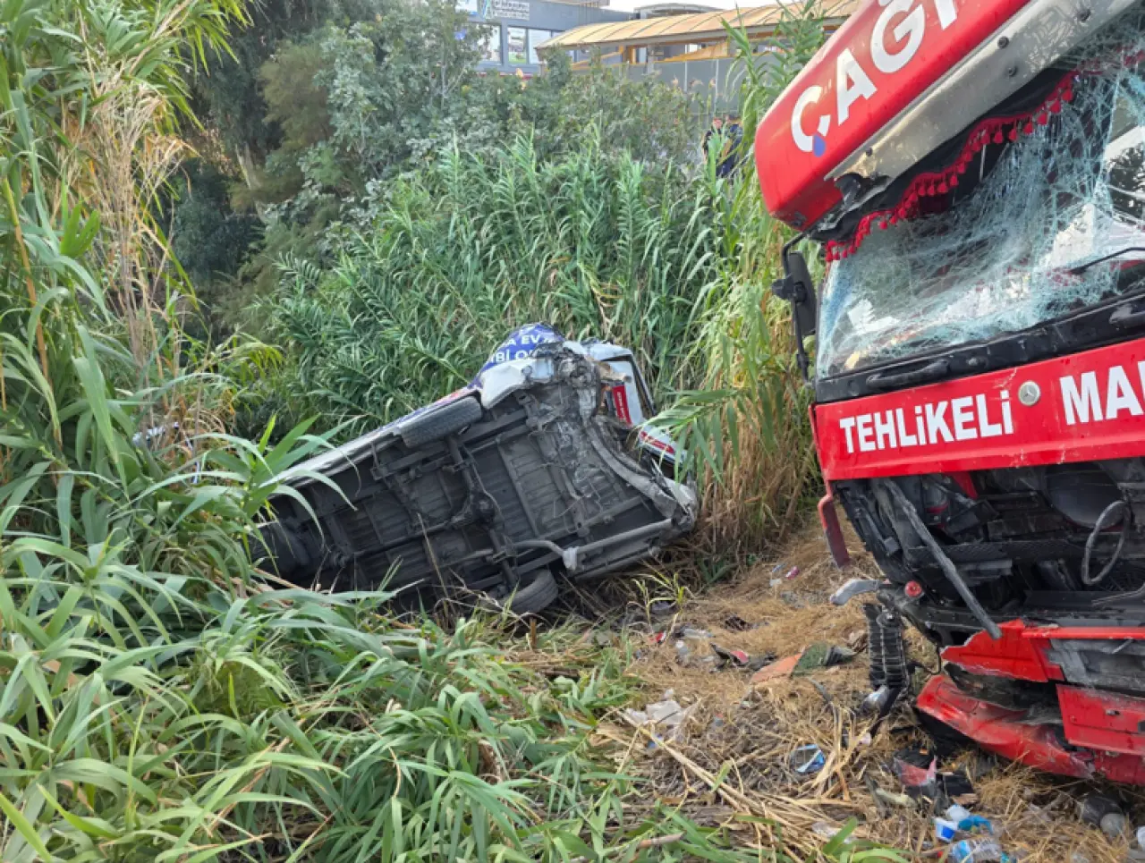 Yolcu minibüsü ve tanker yol kenarında bulunan dere yatağına devrildi.