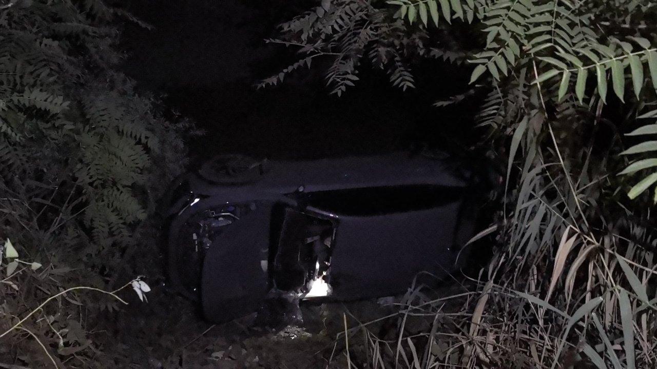 Bursa'nın İnegöl ilçesinde kontrolden çıkarak dere yatağına devrilen otomobilin sürücüsü Yahya Ö. (21), yaralandı.