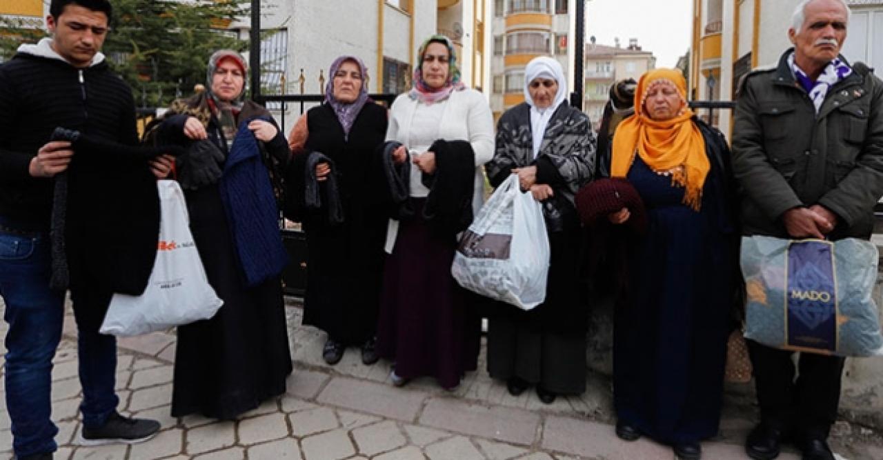Diyarbakır annelerinden Nazlı Sancar, Diyarbakır'dan evlat nöbetinden geldiğini söyleyerek, "Acılarına ortak olmaya geldik. Evlat acısının nasıl olduğunu çok iyi biliyorum. Allah ölülere rahmet eylesin, yaralılara da şifa versin. Çocuklarımızla ilgili de bir gelişme yok. Kendi ellerimizle örgüler ördük. Buradaki depremzedelere getirdik. Bizim çocuklarımız dağda üşüyor, onların da şuan caddelerde üşüyor. Üşümesinler diye onlara getirdik" diye konuştu.