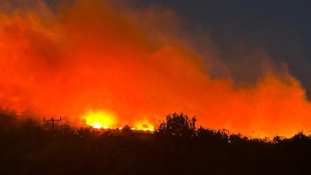 Gece boyunca devam eden ve rüzgarın da etkisiyle geniş bir alana yayılan yangına ekiplerin müdahalesi sürüyor.