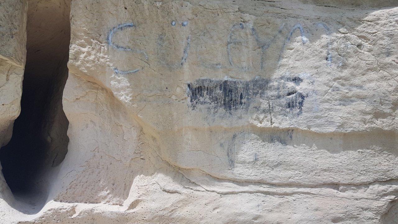 DHA- Nevşehir'in Ürgüp ilçesinde Birleşmiş Milletler Dünya Turizm Örgütü tarafından "dünyanın en iyi turizm köyü" seçilen doğası ve oyma tarihi yapılarıyla bilinen Gomeda Vadisi'nde kimliği belirsiz kişiler tarafından sprey boya ile yazılar yazıldı. Aşk mesajlarından onlarca kadın ve erkek isimlerinin yazıldığı tarihi mekanı görenler, tepki gösterdi.