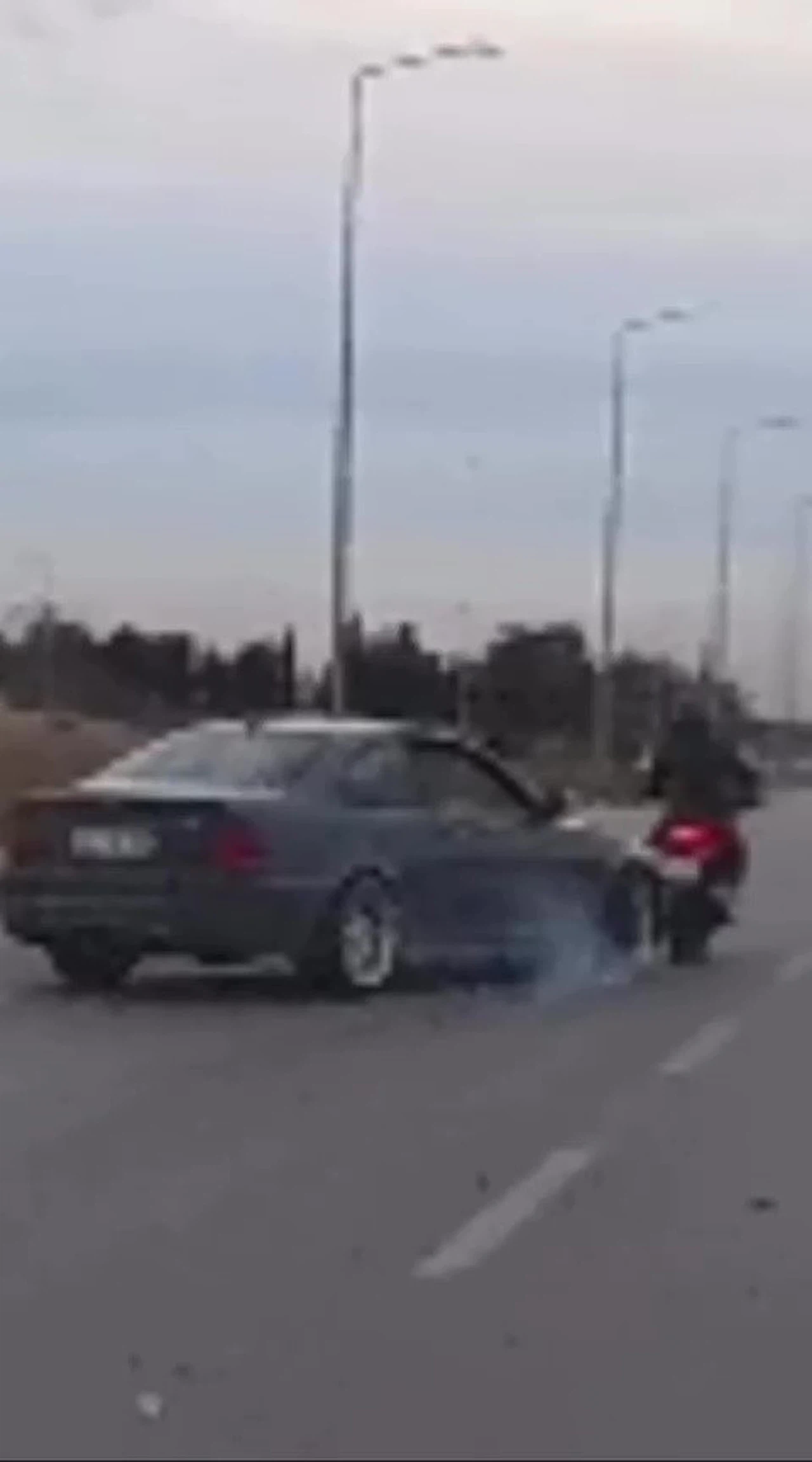 Olay, merkez Sarıçam ilçesi İlim Yolu Bulvarı’nda meydana geldi. İddiaya göre, 35 YM 145 plakalı BMW marka otomobil, yolda drift atarak ilerledi. Bu sırada bir motosikletli, arkasında drift atarak ilerleyen otomobille çarpışmaktan son anda kurtuldu. O anlar başka bir motosikletlinin kask kamerasına saniye saniye yansıdı.
