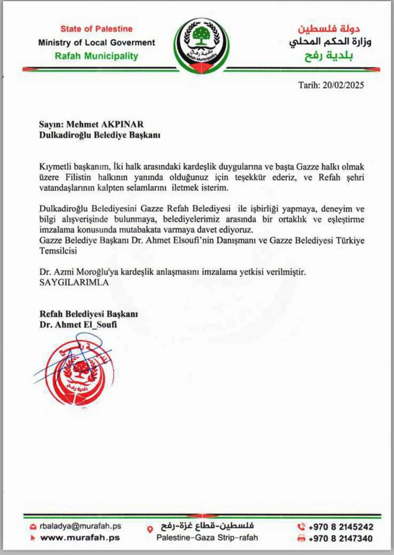 Dulkadiroğlu Belediyesi, Gazze halkının yanında olmaya ve yaşanan dramı hafifletmek için destek vermeye kararlıdır. Bu iş birliği ve dayanışma ruhu, iki toplumun kardeşlik bağlarını güçlendirirken, uluslararası platformda da Filistin davasının duyulmasına katkı sağlayacak önemli bir adım olarak değerlendiriliyor.