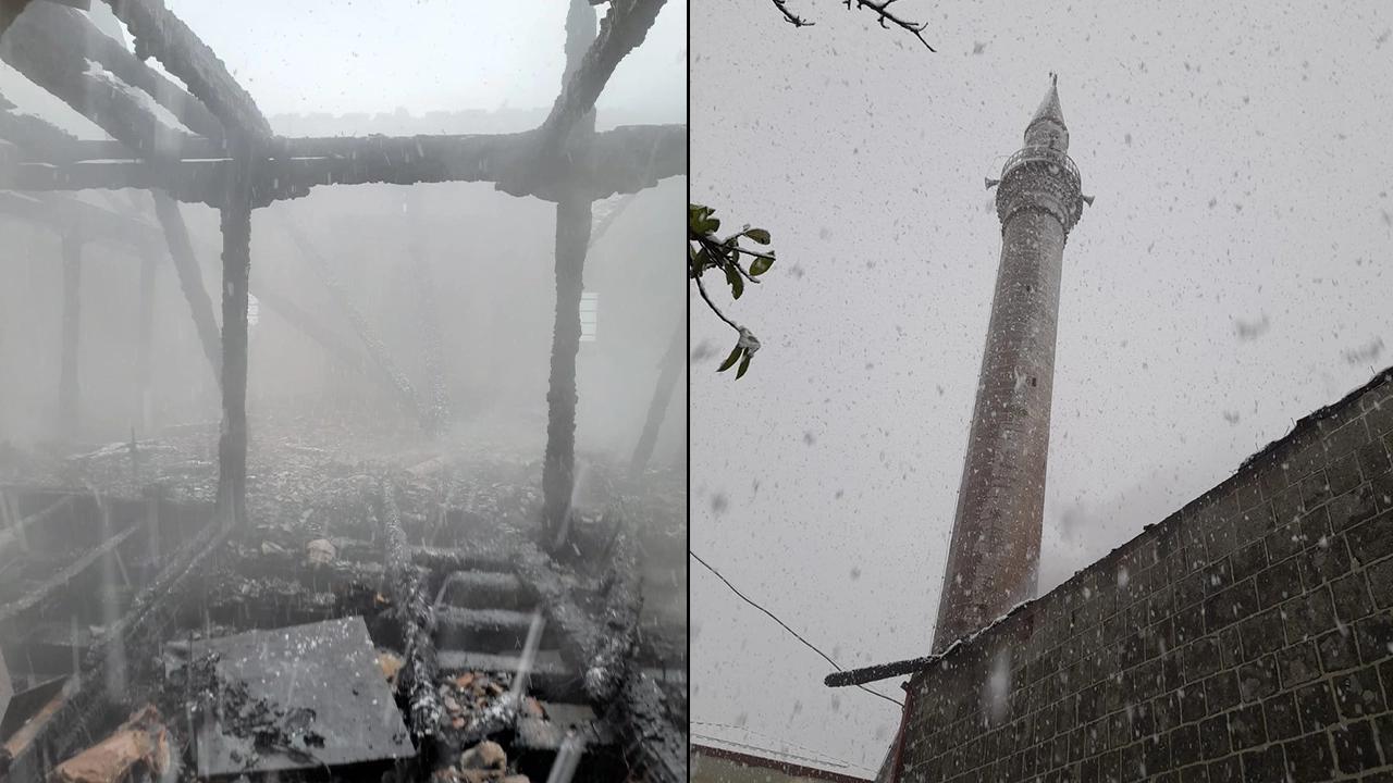 Rize'de, restorasyon çalışmaları tamamlanıp dün ibadete açılan tarihi Akmescit Camisi'nin çatısına, bugün sabaha karşı isabet eden yıldırım, yangına neden oldu. İtfaiyenin müdahalesiyle söndürülen yangında caminin halıları ve çatısı yandı.