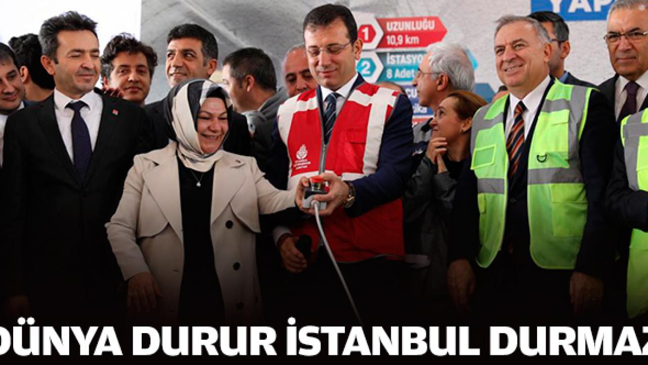 Bir hizmetin sahibinin o dönemin belediye başkanı ya da o dönemin iktidarı olan siyasi parti olmadığını vurgulayan İmamoğlu, “Bir hizmetin sahibi; devlettir, kamudur, millettir. Yani siz sadece o süreci o gün başarıya kavuşturan aracı durumundasınız. Ben aracıyım. Bugün ben aracıyım, yarın başkası. Başarılarımızla övünelim ama asla ‘Sahibiyiz’ demeyelim. Haddimize değil. Onun için her proje ne bir partiye aittir ne de makamdaki kişiye aittir. O süreci iyi yönetme zorunluluğu olan kişiler olarak biz, vazifemizi yerine getirdik. Ve insanlarımızı bu çağdaş ulaşım aracı ile buluşturacağız bu kadar basit. Bizim ağzımızdan kimse şunu duymayacak: ' Partimizin projesi, benim projem, ben yaptım.' Böyle birşey yok. 'Biz yaptık, milletçe biz yaptık. Sadece metro değil, metroyu destekleyici toplu ulaşım hatalarımızı, metrobüsün otobüs yenileme sürecini hızlandıracağız. Özellikle İETT hatlarını, uzun değil kısalaştıracak, ekspres hale getirip, diğer toplu ulaşım hatlarımızı destekleyici hale getireceğiz. Aynı zamanda deniz ulaşımına ağırlık verip diğer toplu ulaşım araçlarını buluşturan noktaları daha etkin hale getireceğiz. Yani tümüyle entegre bir sistemi İstanbul'da var edeceğiz. Toplu ulaşım ya bir gerginlik meselesi, ‘Tümüyle çözdük’ deme şansınız yok; ama mümkün olduğu kadar çağdaş, toplumun rahatsız olduğu değil keyifle günlük seyahatini yaptığı ve hayatının büyük bölümünü toplu ulaşımda değil işinde, gücünde ve sosyal yaşamında geçirdiği bir İstanbul var etmek istiyoruz” dedi. Hatla ilgili teknik bilgiler paylaşan İmamoğlu, konuşmasının ardından beraberindeki heyetle birlikte butona bastı ve TBM makinesi törenle şantiye alanına indirildi.
