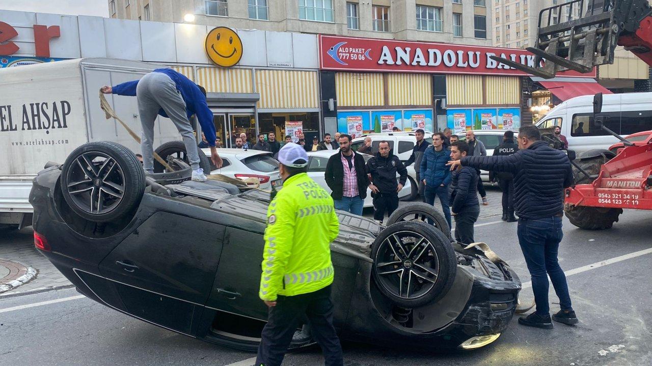 İstanbul Beylikdüzü'nde polisin dur ihtarına uymayarak kaçan otomobil kırmızı ışıkta bekleyen 3 otomobile çarparak takla attı. Plakasının sahte olduğu öğrenilen otomobilin içinde yapılan aramada uyuşturucu madde ve silah bulundu. Otomobilde bulunan 3 kişi gözaltına alındı.