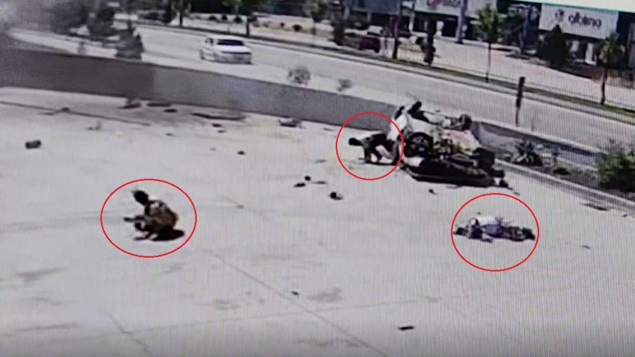Kaza, dün saat 11.00 sıralarında meydana geldi. İnegöl'den Bursa istikametine seyir halinde olan Selçuk Yıldız (40) yönetimindeki 11 SH 627 plakalı otomobil, sürücüsünün direksiyon hakimiyetini kaybetmesiyle kontrolden çıktı. Savrulan araç duvara çarpıp, havada takla atarak bir mobilya fabrikasının bahçesine düştü. Alev alan araçtan fırlayan 2 kişi metrelerce savrularak yere düşerken, ters dönerek duran otomobildeki Kemal Ceylan da emekleyerek çıktı. O anlar, bir iş yerinin güvenlik kamerasına saniye saniye yansıdı.