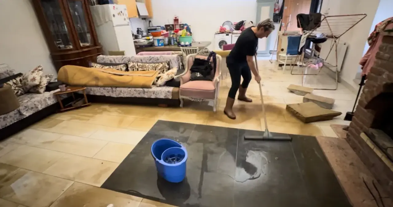 Ev sahipleri, taşan suların arasında kovalar ve çekpaslarla evi temizlemeye çalıştı. Ancak suyla birlikte gelen çamur ve atıklar, özellikle bir evde büyük hasara yol açtı.