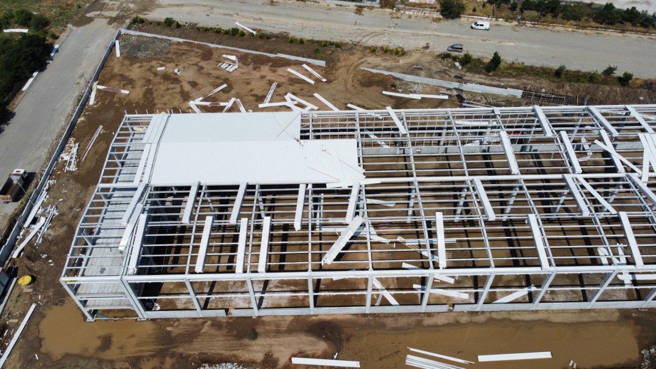 Fırtınada inşaatın devam ettiği fabrikada çatı yerinden koptu. 5 işçiden 3'ü, çatı parçalarıyla birlikte yaklaşık 12 metre yükseklikten düştü.