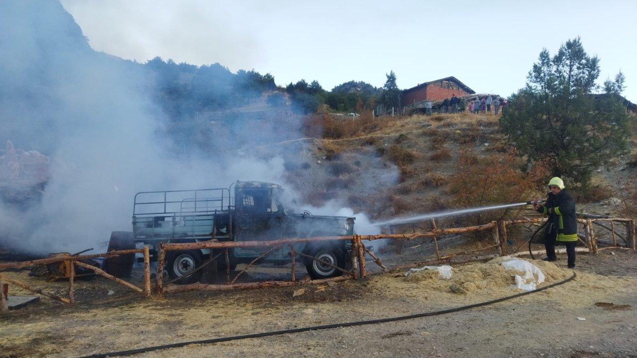 Çorum'da başrollerini Ahmet Kural, Cengiz Bozkurt ve Serdar Gökhan'ın üstlendiği "Efsane" isimli filminin çekimlerinin yapıldığı köyde çıkan yangında, samanlık, ahır ve 2 araç yandı, 2 büyükbaş öldü.