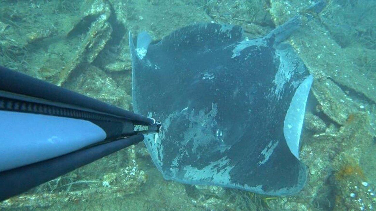 Ege Denizi'nin kuzeyinde trofe avı içi dalış yapan rekortmen dalgıç Müjdat Turan, bir süre sonra kendisine bir vatozun yaklaştığını fark etti. Turan, kuyruk kısmı kesilmiş ve halatla bağlanmış olan vatozu su altı kamerasıyla görüntüledi. Vatozun çok tehlikeli bir tür olduğunu belirten Turan, bulunduğu yerde derinliğin çok fazla olması nedeniyle balığı halattan kurtaramadığını söyledi.