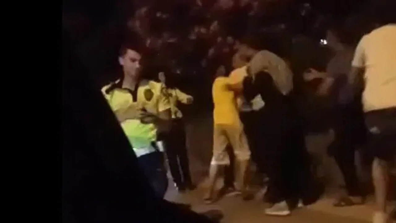 Olay yerine sonradan gelen ve oğluna ceza yazıldığını öğrenince sinirlenen baba Z.S., görevli polislerle tartışmaya başladı. Defalarca yapılan uyarılara rağmen agresif tutumunu sürdüren Z.S., görevli bir kadın polis memurunun koluna vurdu, ardından müdahale eden başka bir polis memurunu itti. Polis memuru, yere düşmekten son anda kurtulurken, meslektaşı saldırgan şahsı biber gazı ile etkisiz hale getirdi.