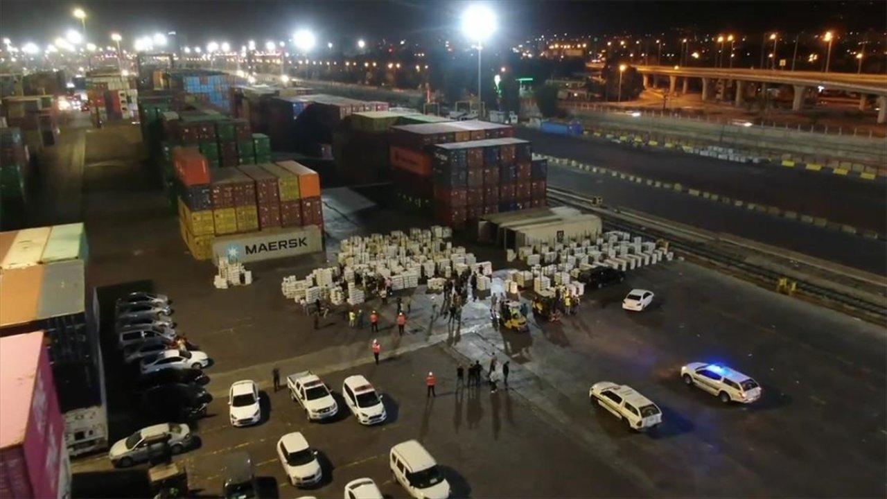 Limanların da yakın takibe alındığını kaydeden Ali Yerlikaya, "Mersin İl Emniyet Müdürlüğü Narkotik Suçlarla Mücadele Şube Müdürlüğümüz Mersin Uluslararası Limanı'nda yapılan aramada yasal yükü muz olan konteynerde 610 kilogram kokain ele geçirdi." ifadelerini kullandı.
