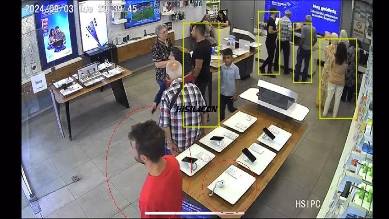 Şüpheli, daha sonra cep telefonlarından birini alıp dükkandan uzaklaştı. Hırsızlık, güvenlik kameralarına yansıdı. İhbarla adrese gelen polis ekipleri güvenlik kameralarını incelemeye alıp şüphelinin yakalanması için çalışma başlattı.