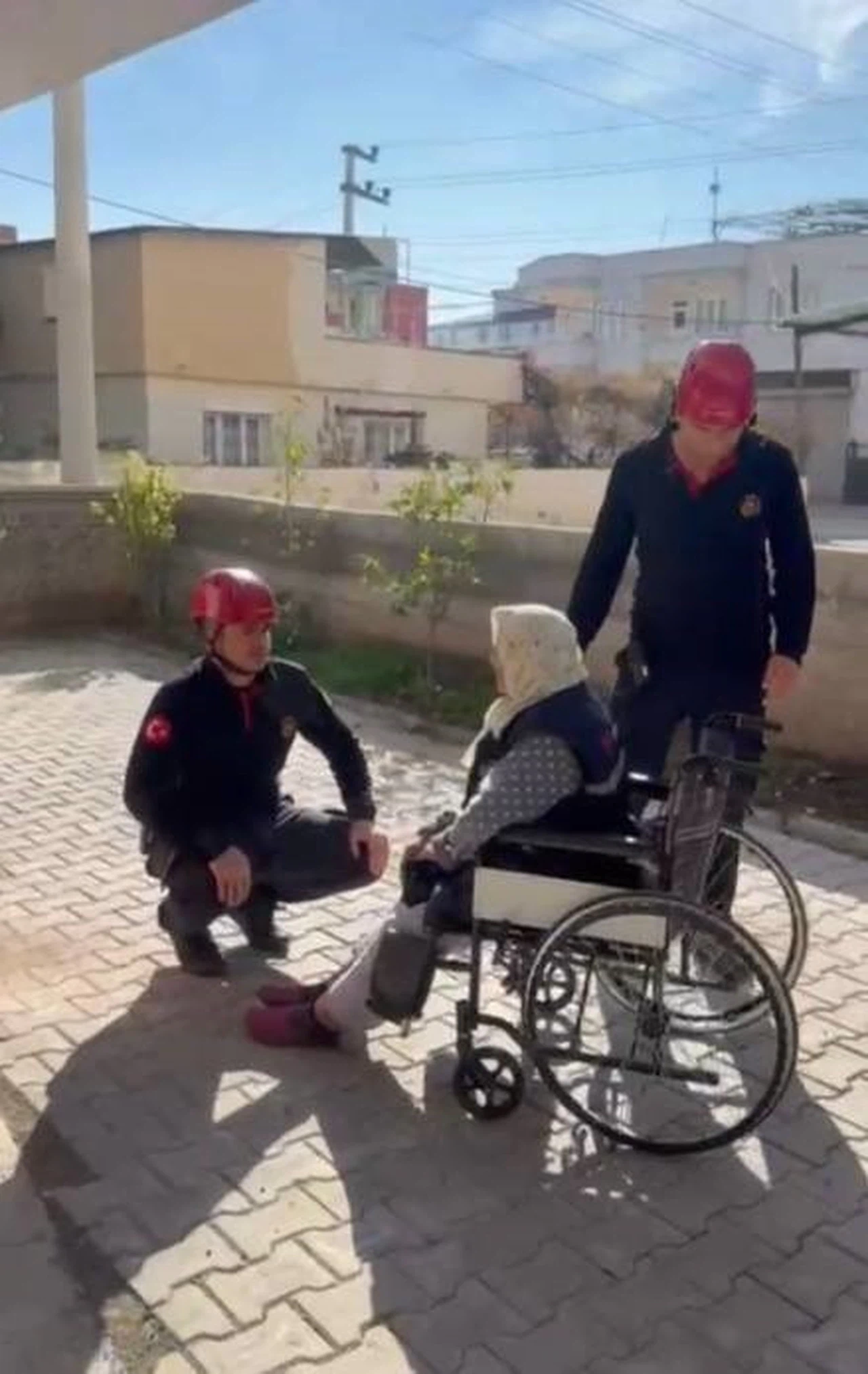 İhbar üzerine adrese sevk edilen itfaiye ekipleri, yaşlı kadını iki personel eşliğinde merdivenlerden taşıyarak ikinci kattaki dairesine güvenli şekilde ulaştırdı. Bu sırada bir kadın komşunun el feneriyle ekiplere ışık tutarak yardımcı olduğu görüldü.