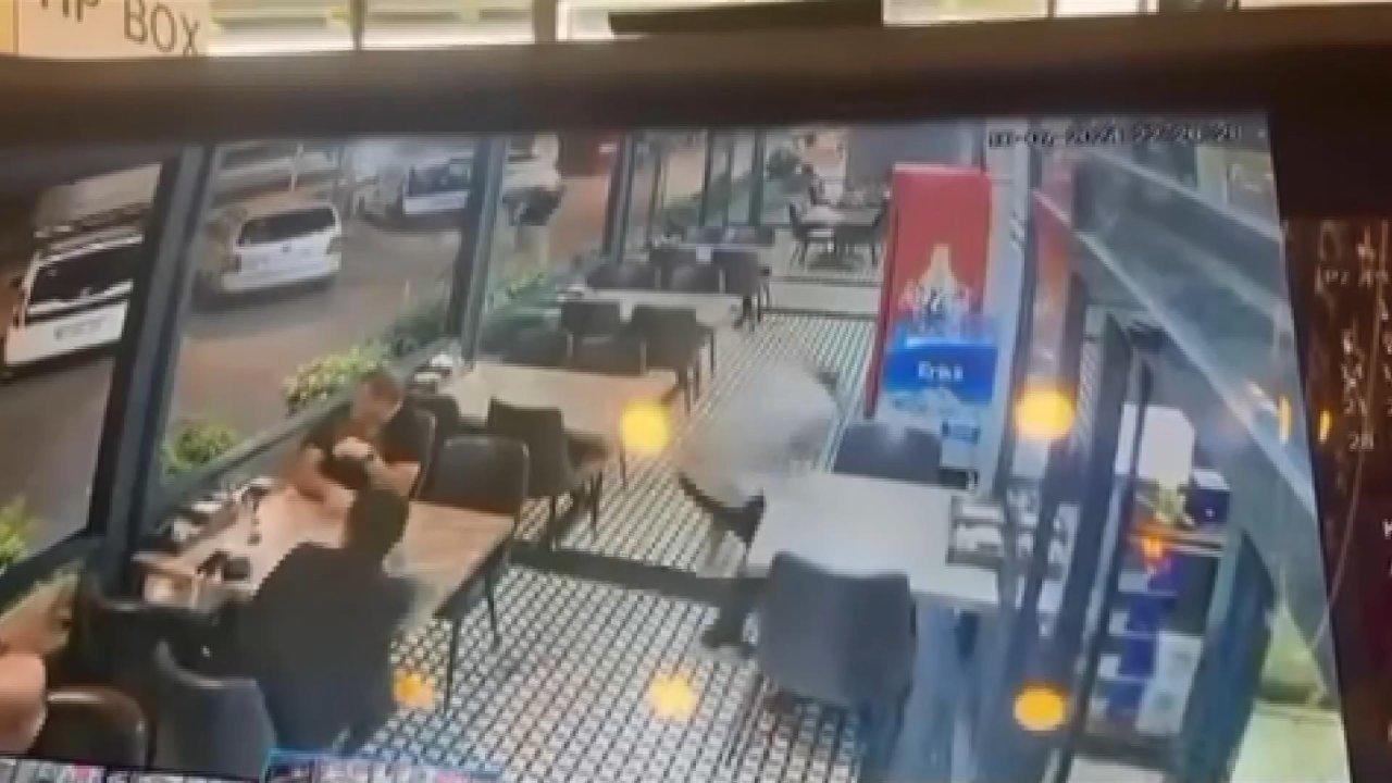 Güvenlik kamerasına yansıyan görüntülerde olay sonrası hayatını kaybeden Emir Şeyh El-Qahawatiyya isimli kişinin, caddede yürüdüğü sırada restorana yapılan silahlı saldırı sonucu yere düştüğü ve restorandakilerin panikle yere yattığı görülüyor.