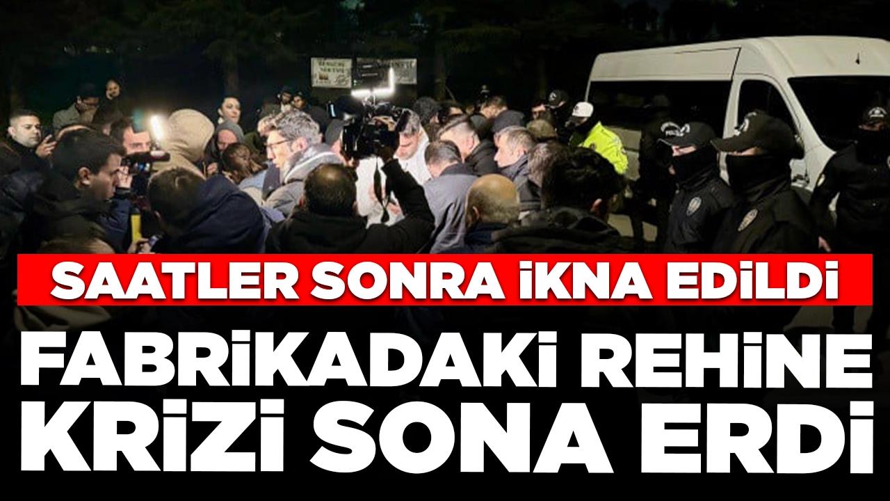 Fabrikaya giren polis ekipleri İbrahim Y.'yi gözaltına aldı. Rehinelerin sağlık durumlarının iyi olduğu öğrenilirken, endişeli bekleyişlerini sürdüren rehine yakınları şüphelinin teslim olduğunun açıklanmasının ardından büyük sevinç yaşadı.