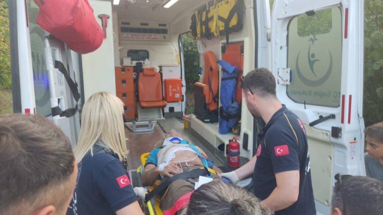Düzce'de fındık bahçesinde tırpan yaptığı sırada dengesini kaybedip 60 metre yükseklikten yuvarlanan Mahmut Keleş ağır yaralandı.