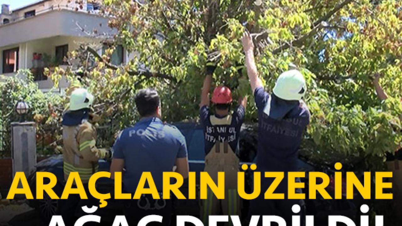 Florya'da park halindeki üç araç devrilen ağacın altında kaldı. Araçlarda hasar oluştu.