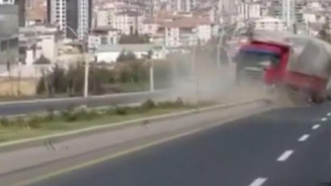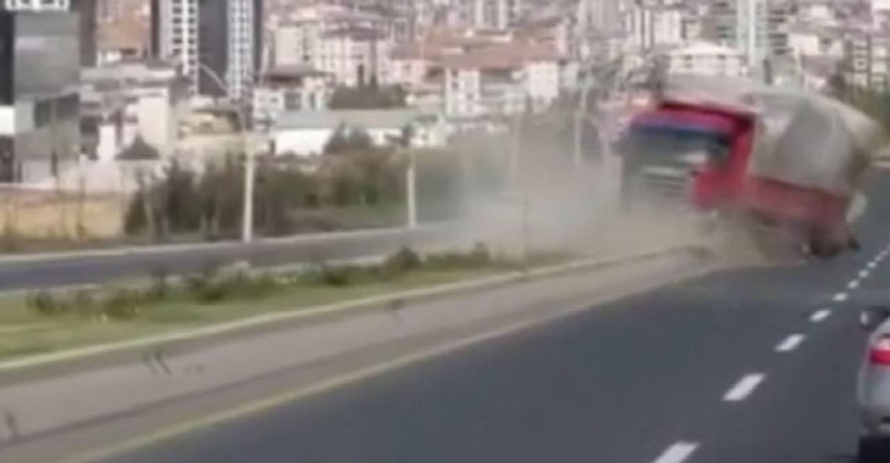 Kaza, öğle saatlerinde Pursaklar ilçesindeki Özal Bulvarında meydana geldi. Plakası ve sürücüsü öğrenilemeyen otomobil, Akyurt ilçesinden Ankara yönüne giden Kasım Aymergen yönetimindeki 06 DS 3150 plakalı kamyonun hava tüpüne çarptı. Bunun üzerine freni boşalan kamyon, sürücüsünün kontrolünden çıkarak geriye doğru gitmeye başladı. Sürücü Aymergen de diğer araçlara çarpmamak için manevralar yapmaya başladı. Yoğun trafik içinde yaklaşık 2 kilometre geri giden kamyon, sürücü Aymergen'in müdahalesiyle refüje çarparak karşı geçtikten sonra durdu. Hiçbir araca çarpmayan kamyonun sürücüsü Aymergen, kazayı yara almadan atlattı. Kaza anı karşı şeritten gelen bir otomobilden cep telefonuyla görüntülendi.