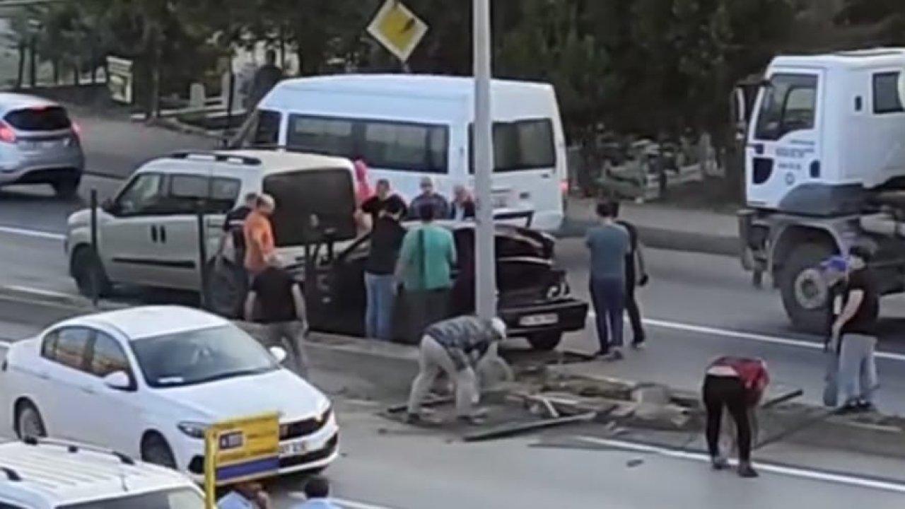 Kaza saat 18.30 sıralarında İnegöl-Alanyurt yolu üzeri Yağlı tohumlar kavşağında meydana geldi. Alanyurt'tan İnegöl'e seyir halinde olan Yaşar Kavlan (50) yönetimindeki 16 KIE 48 plakalı kamyon, freninin patlaması sonucu kontrolden çıktı. Yokuş aşağı hızlanan kamyon önünde seyir halinde olan sürücü Mert Beslan (27) yönetimindeki 54 KA 869 plakalı otomobile arkadan çarpıp bariyerleri aşarak karşı yönde bulunan bir işyerinin kapısına çarptı. Kaza sonucu otomobilin sürücüsü ve yanındaki hamile olan Büşra Haney (27) yaralandı. İhbar üzerine kaza yerine polis ve sağlık ekibi sevk edildi. Trafik ekipleri, olası ikinci kazayı önlemek için yolda güvenlik önlemi alırken sağlık ekipleri yaralılara müdahale etti. İlk müdahalesi kaza yerinde yapılan 2 yaralı, İnegöl Devlet Hastanesi'ne kaldırıldı.
