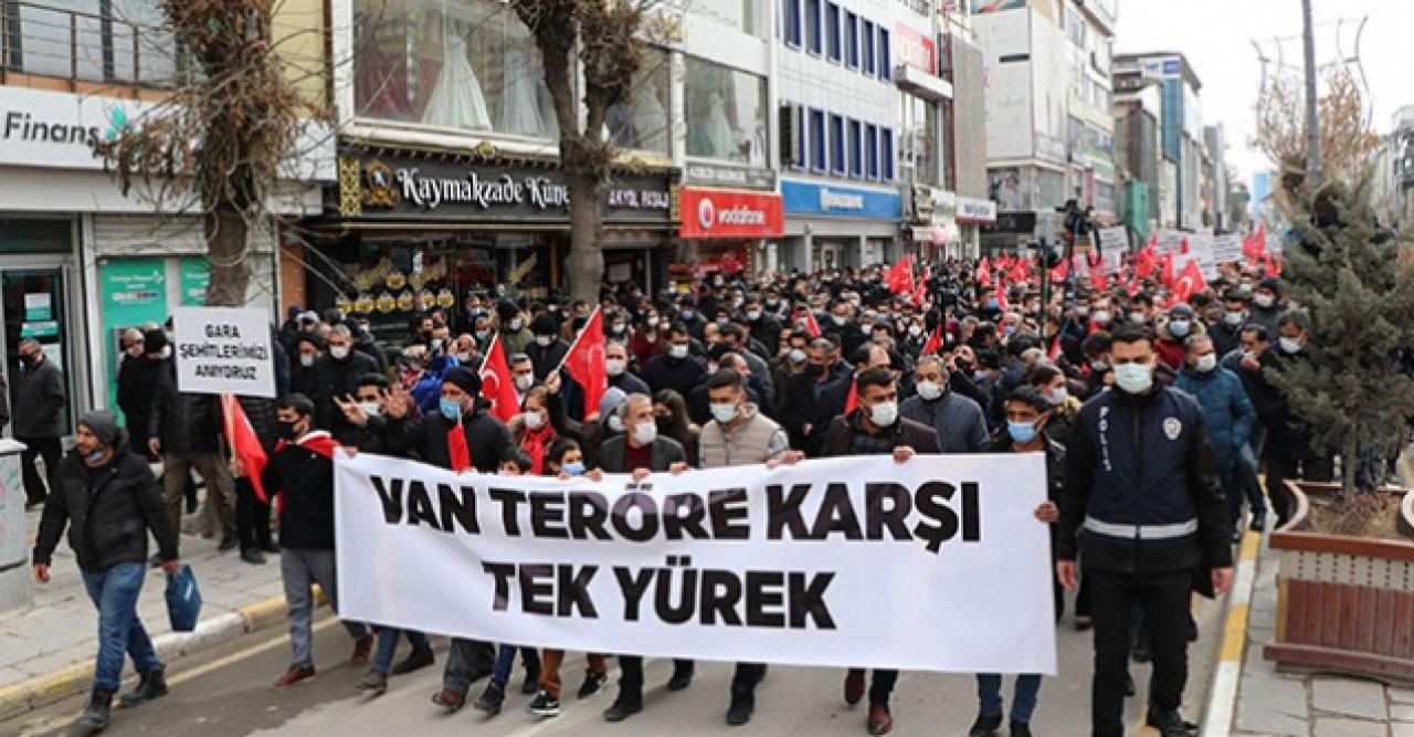 Irak'ın kuzeyindeki Gara bölgesinde terör örgütü PKK tarafından 13 kişinin şehit edilmesinin ardından Van'da, Memur-Sen Şubesi organizatörlüğünde, sivil toplum kuruluşu ve siyasi parti temsilcileri ve halkın katılımıyla teröre tepki yürüyüşü düzenlendi. Cumhuriyet Caddesi'ndeki Kent Meydanı'nda toplanan kalabalığa Van Valisi ve Büyükşehir Belediye Başkan Vekili Mehmet Emin Bilmez ile eşi Meral Bilmez, Cumhuriyet Başsavcısı Oğuzhan Dönmez, YYÜ Rektörü Prof. Dr. Hamdullah Şevli, İl Jandarma Komutanı Tuğgeneral Yüksel Yiğit, İl Emniyet Müdürü Ali Karabağ, AK Parti Van İl Başkanı Kayhan Türkmenoğlu, ilçe belediye başkanları, kurum amirleri de katıldı. Yüzlerce kişi, ellerindeki Türk bayrakları ile yürüyüşe geçti. Güvenlik önlemlerinin alındığı yürüyüşe katılanlar sık sık 'Kahrolsun PKK', 'Şehit olanlar bizim evlatlarımızdır', 'Van teröre karşı tek yürek', 'Gara şehitlerimizi anıyoruz' sloganları atıp, terörü lanetledi. Cumhuriyet Caddesi'nden Beşyol Meydanı’na oradan da Hz. Ömer Camii'ne kadar yürüyen kalabalığa, karadan ve havadan da polis desteğiyle güvenlik sağlandı.