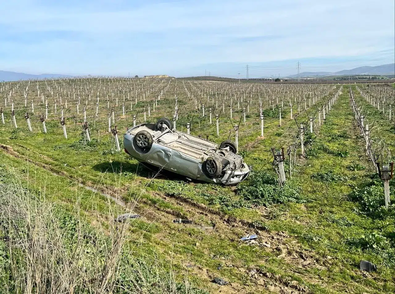 Otomobil Takla Atarak Üzüm Bağına Uçtu