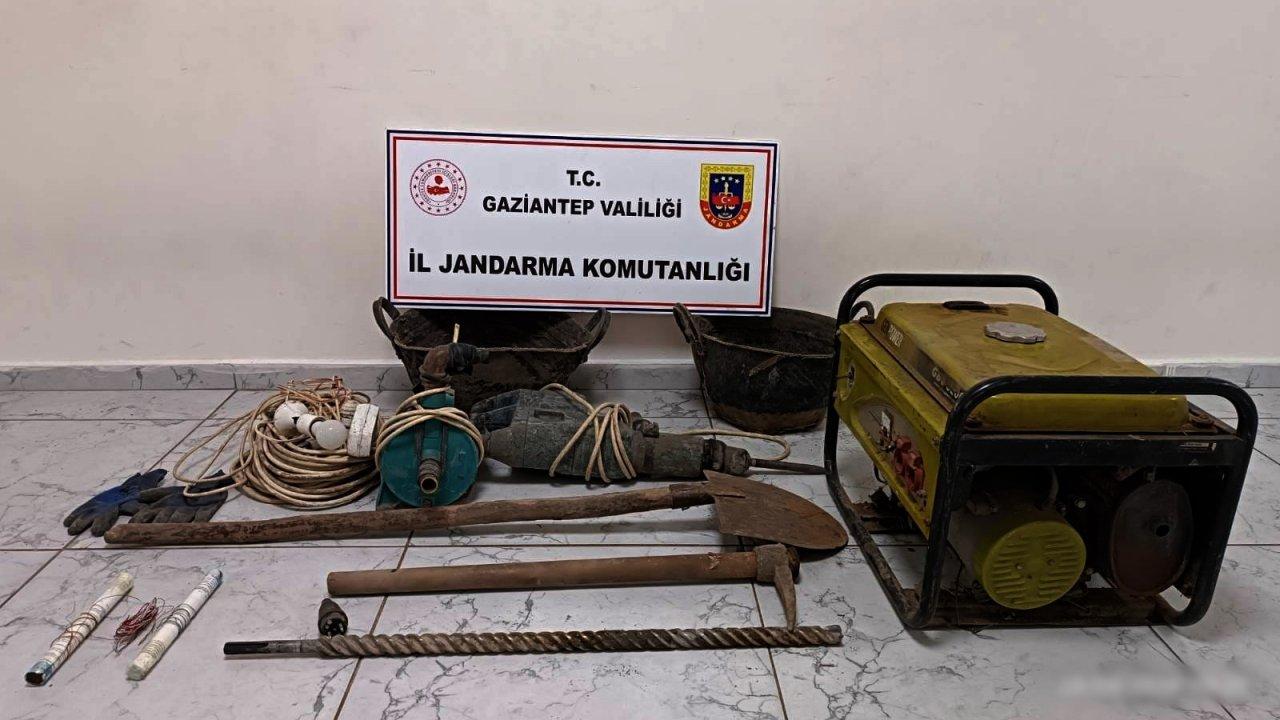 Kazıda kullanılan aletler ile yakalanan A.Ç. ve S.B., gözaltına alındı. Şüphelilerin jandarmadaki işlemleri sürüyor.