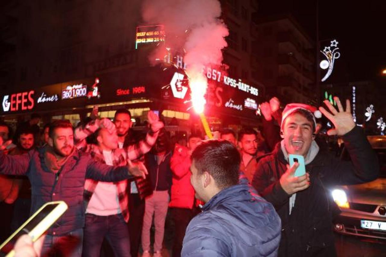 Gaziantep’te üniversite meydanında toplanan gençler yeni yıla meşale yakıp halay çekerek girdi. Polis ekipleri yılbaşı önlemleri kapsamında meydanda yoğun güvenlik önlemi alırken, çok sayıda vatandaş telefonları ile kutlamaları çekti. Toplanan kalabalık bir süre sonra dağılırken, polis ekipleri bölgede tedbir amaçlı bekleyişini sürdürdü. (DHA)