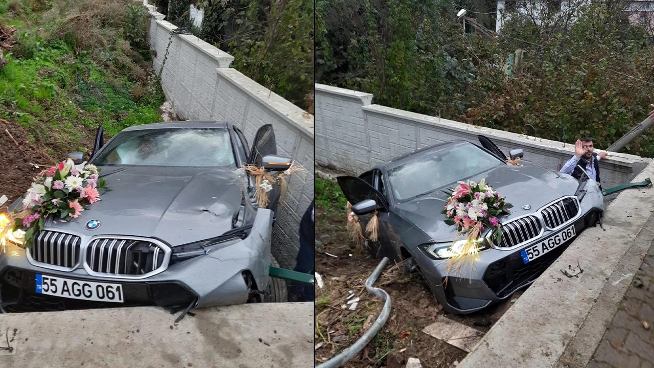 Kaza, dün 19 Mayıs ilçesi Dereköy Mahallesi'nde meydana geldi. Oğuzhan Kaptanoğlu'nun (24) kullandığı gelin arabası olarak süslenmiş 55 AGG 061 plakalı otomobil, konvoy sırasında kontrolden çıkarak 4 metre yükseklikten boş araziye düştü. Sürücü ile yanındaki Selinay Koca (24) yaralandı; gelin ile damat kazayı yara almadan atlattı. Yaralılar, sağlık ekiplerince Ondokuz Mayıs Üniversitesi Tıp Fakültesi Hastanesi'ne kaldırıldı.
