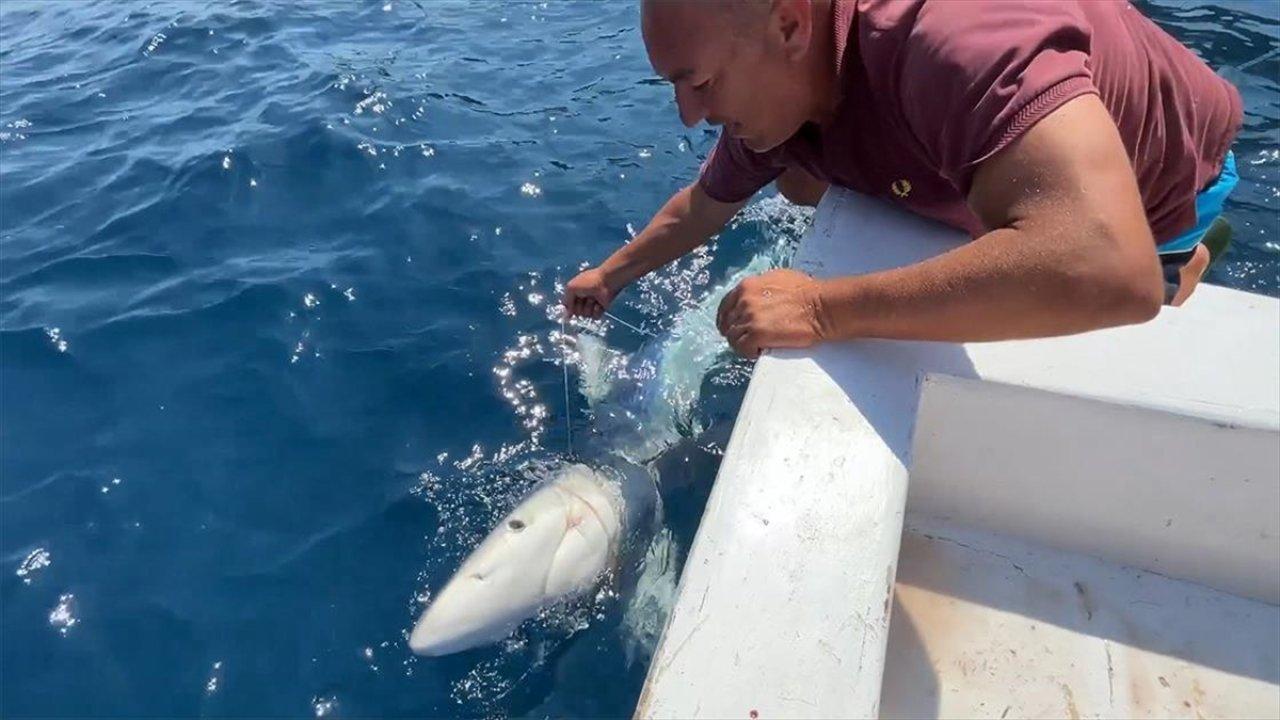 Daha sonra ağlardan kurtarılan balık yeniden suya bırakıldı