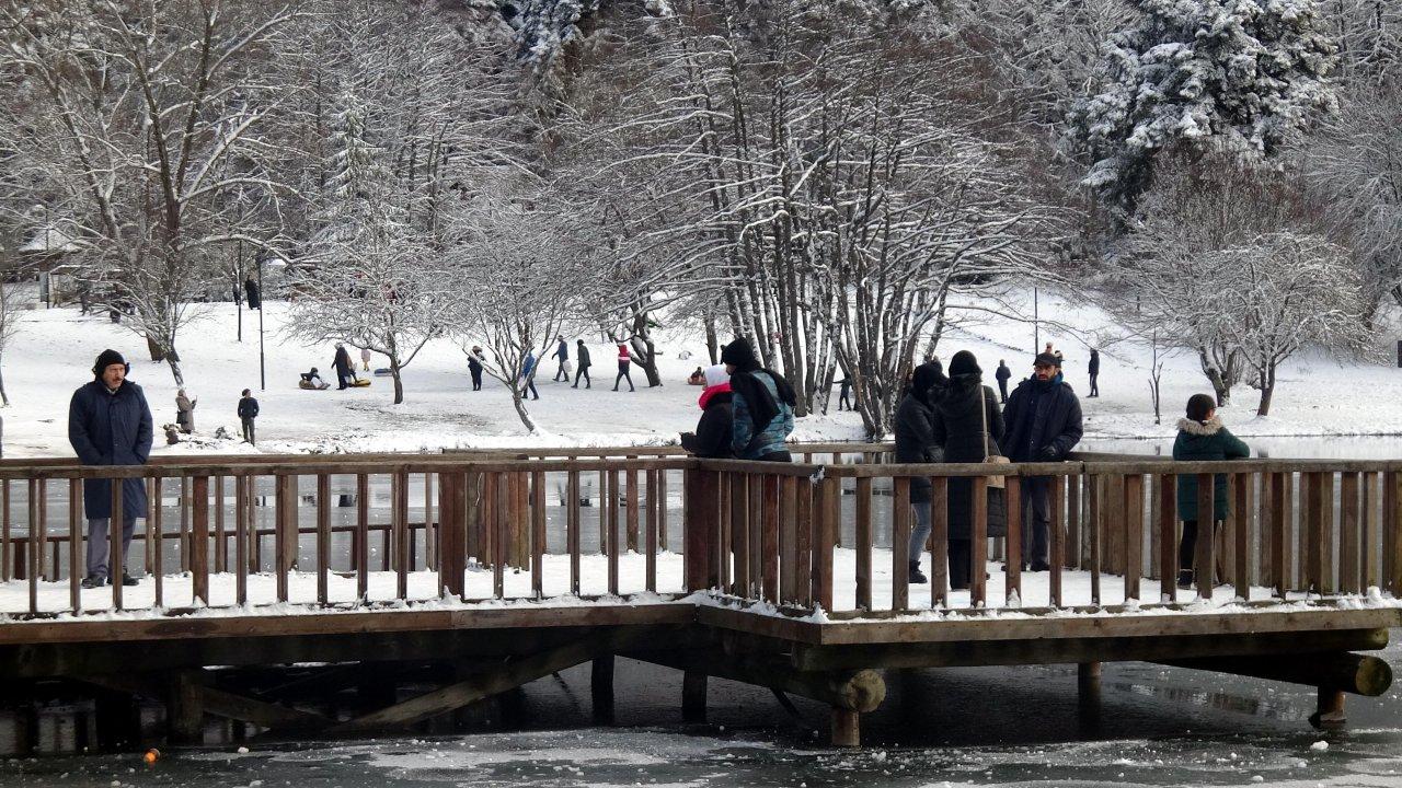 Kar yağışı sonrası güzel görüntülerin oluştuğu parka akın eden tatilcilerden bazıları göl çevresinde yürüyüş yaptı, bazıları da piknik yapıp, mangal yaktı. Karla kaplı parkta vakit geçiren çocuklar, kar topu oynayıp, şambrel ile kaydı.