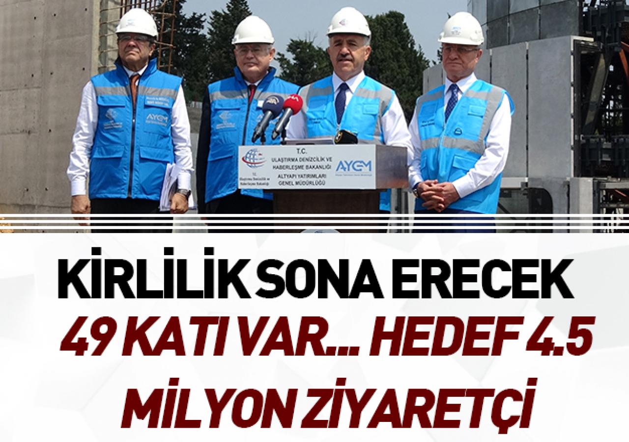 Kulenin tamamlanacağı tarihe de değinen Arslan, "Hedefimiz bu yıl içerisinde tamamını bitirmek ve burada radyolarımıza, televizyonlarımıza hizmet vermek. Aynı zamanda da Büyük Çamlıca üzerindeki antenlerin tamamını kaldırmak. Görüntü kirliliğinden kurtarmak ve tek bir kule ile bütün bu ihtiyacı görmek" dedi. Arslan, "Kulemizdeki inşaat anlamında fiziki ilerlememiz şu an yüzde 75 seviyelerinde. Kule, denizde 218 metrelik kotta başlatıldı ve 369 metre kulenin toplamı olmak üzere 18 metre de yer altındaki kısmı olmak üzere 387 metreden oluşuyor. Deniz seviyesinden ise 587 metrelik kota çıkmış olacak" diye konuştu.