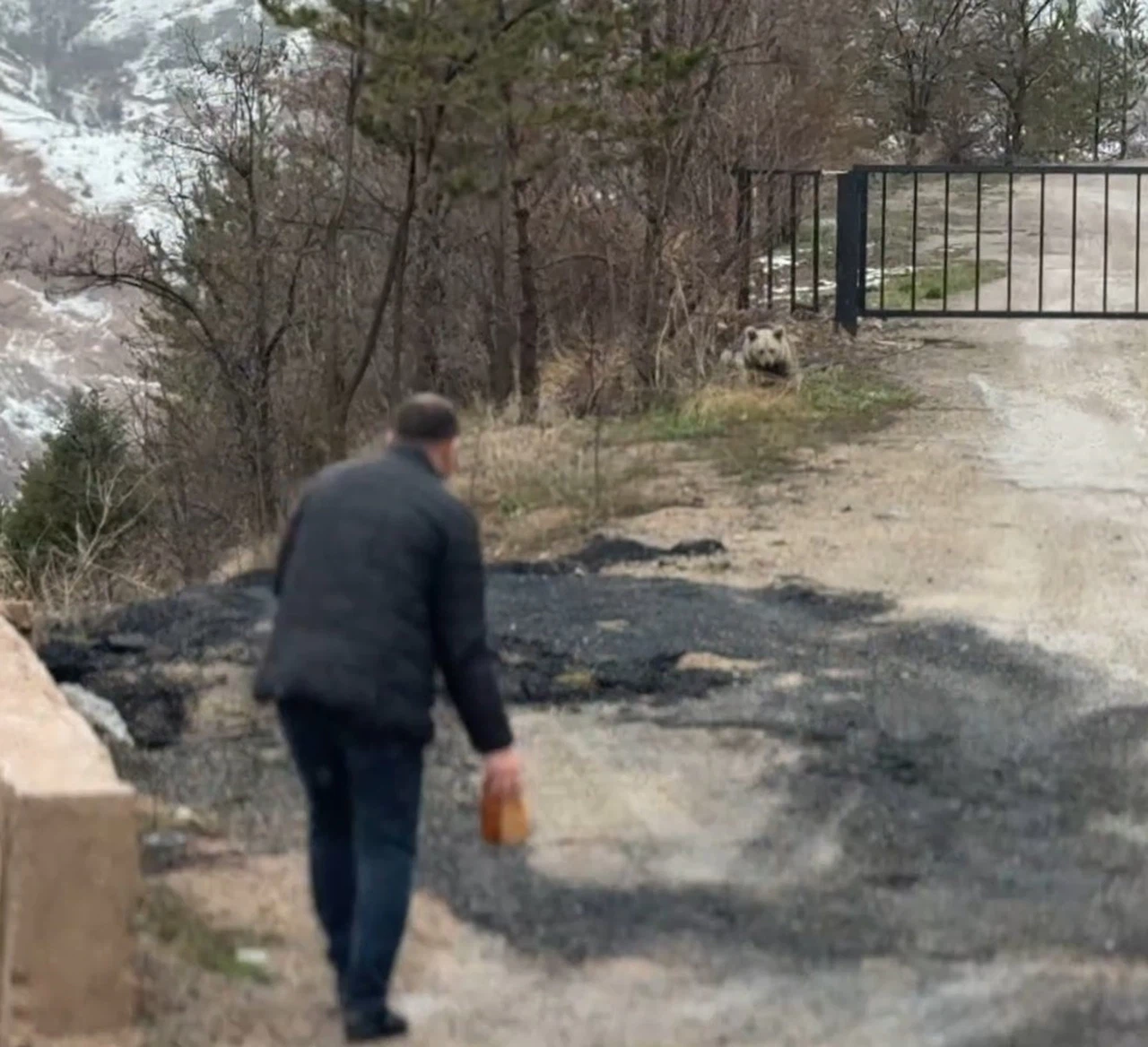 Ayının yanına yaklaşan bir vatandaş ise, ‘Ne haber koca oğlan’ diyerek ayıya seslendi. Uzun bir süre bölgede dolanan yavru ayı, daha sonra uzaklaştı.