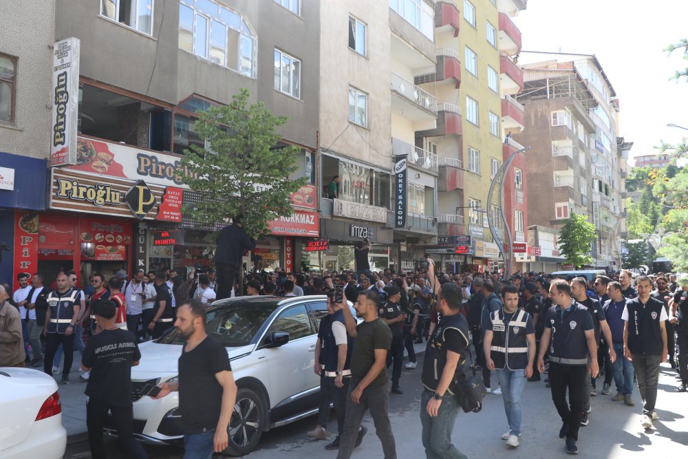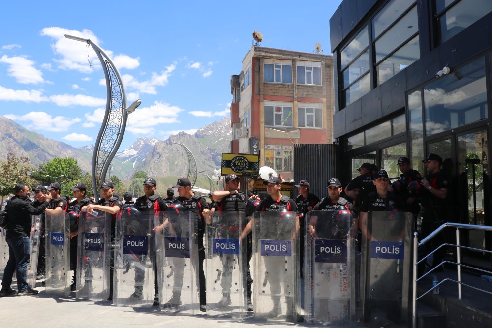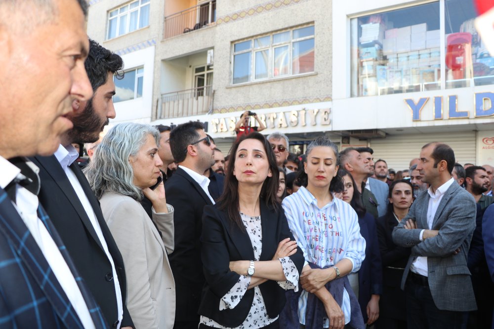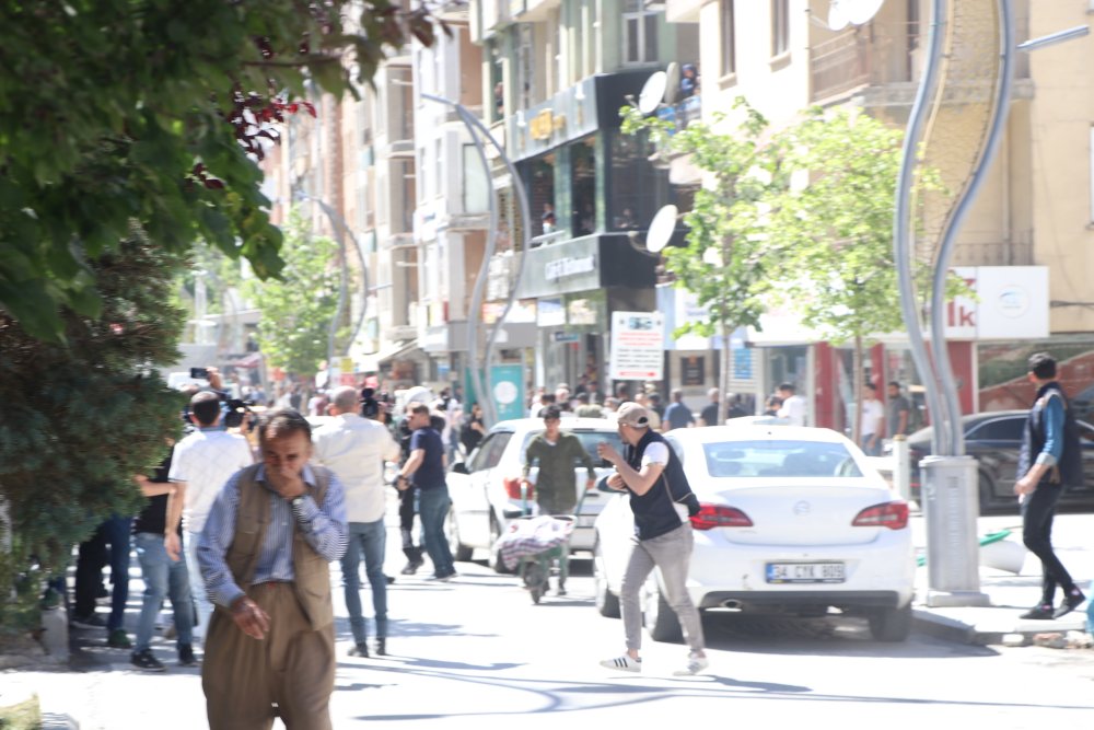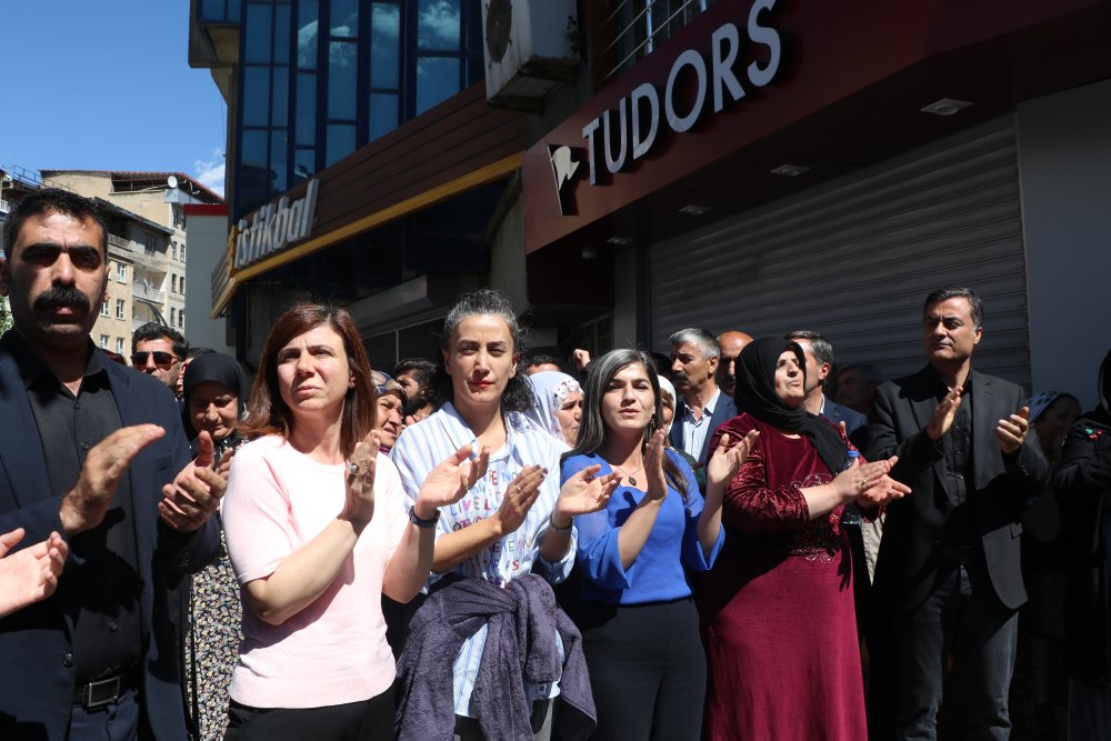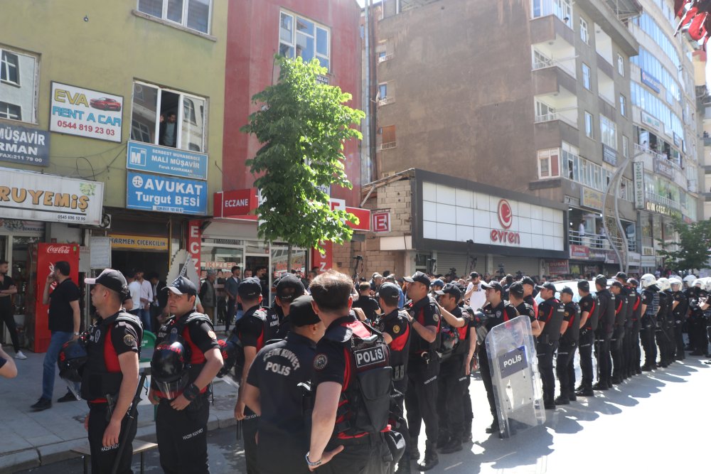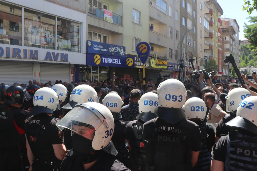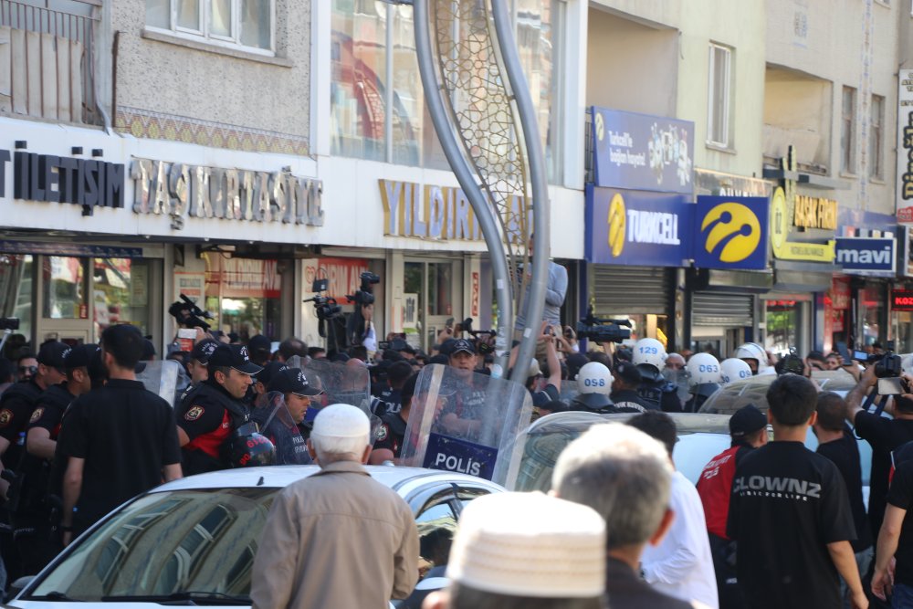 Kalabalık grup, daha sonra çarşı merkezine yürüyüşe geçti. Bulvar Caddesi'ndeki eski belediye binasına kadar yürüyen grubun önünü kesen polis ekipleri, yürüyüşe izin vermedi. Yürümek isteyen gruba polis, göz yaşartıcı bomba ile müdahale etti. Öte yandan DEM Parti'li bazı milletvekillerinin çarşı merkezindeki oturma eylemi sürüyor.