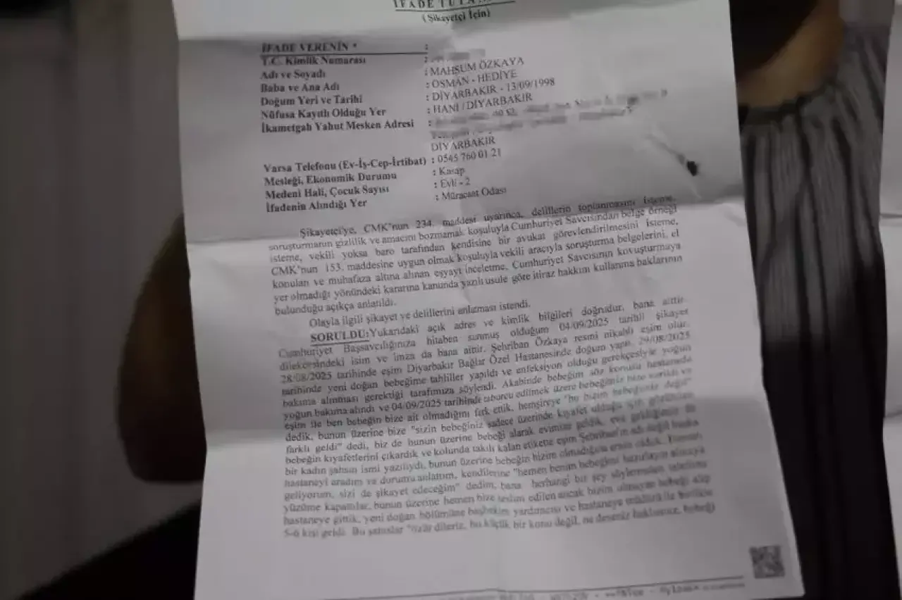 Diyarbakır’da özel bir hastanede akılalmaz bir hata yaşandı. 28 Ağustos’ta sezaryenle kız çocuğu dünyaya gelen Mahsum Özkaya’nın eşi, bebeğini almak için gün sayarken büyük bir şokla karşılaştı.