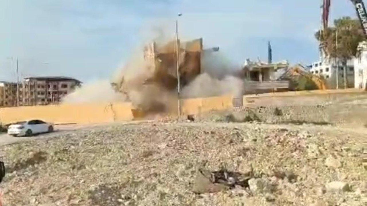 Merkez Defne ilçesinde 6 Şubat depremlerinde ağır hasar alan bir binanın kontrollü yıkımına başlayan ekipler, çalışmalarını sürdürdüğü sırada bina aniden yıkıldı.