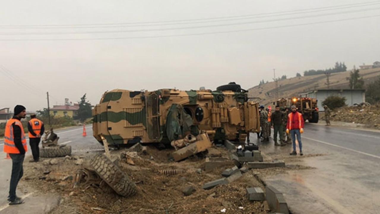 Hatay'da, askeri aracın devrilmesi sonucu 3 asker yaralandı. Hastanede tedaviye alınan askerlerin sağlık durumlarının iyi olduğu belirtildi.