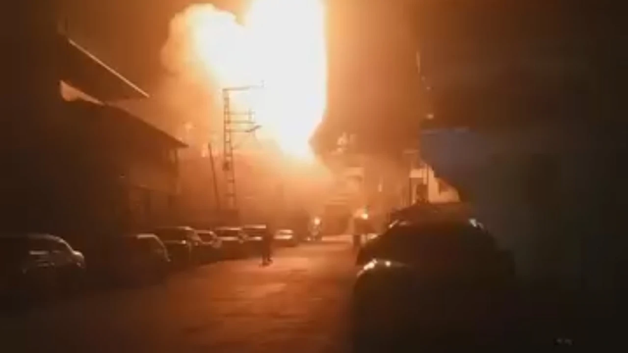 Hatay’ın Defne ilçesi Yeşilpınar Mahallesi’nde bir elektrik trafosu, gece saatlerinde büyük bir gürültüyle patladı. Patlama sonrası mahallede elektrikler kesilirken, trafodan çıkan alevler geceyi aydınlattı. O anlar, bir vatandaşın cep telefonu kamerasıyla kaydedildi.