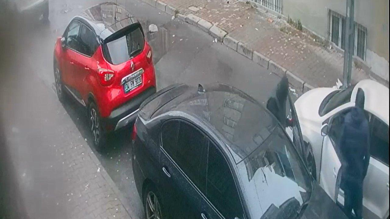 36 ayrı otomobilden hırsızlık yaptıkları belirlenen şüphelilerin yaptıkları bazı hırsızlıklar güvenlik kameralarına yansıdı.