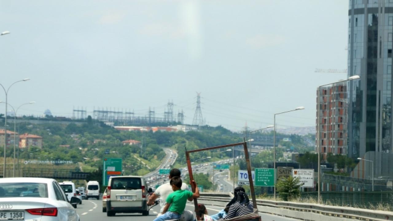 Kendi hayatlarını hiçe sayarak, sepetli motosikletle TEM'de tehlikeli yolculuk yapan 4'ü çocuk 6 kişi kameralara yakalandı.