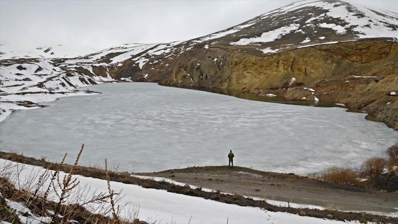 Baharın ikinci ayı nisanın ortasında da yüzeyindeki buzları çözülmeyen göl, yazın ise çevresinde açan çiçeklerle ziyaretçilerini ağırlıyor.