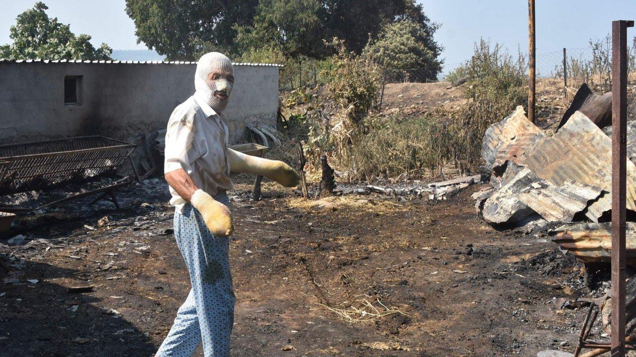 Çanakkale'deki yangında alevlerin sardığı ahırdaki hayvanlarını kurtarmak isteyen Zeki Demir (66) ölümden döndü. Yüzünde ve ellerinde yanıklar oluşan Demir, "Ateşin önüne geçilmiyor. İçeriye geldim, dumandan oğlakları göremedim, yemliğin arkasına saklanmışlar. Dışarıya çıktım, oğlakları göremeyince geri girdim ahıra. Oğlakları kurtarabilmek için çok uğraştım ama ateş tamamen burayı esir alınca dışarı kaçmak zorunda kaldım" diye konuştu.