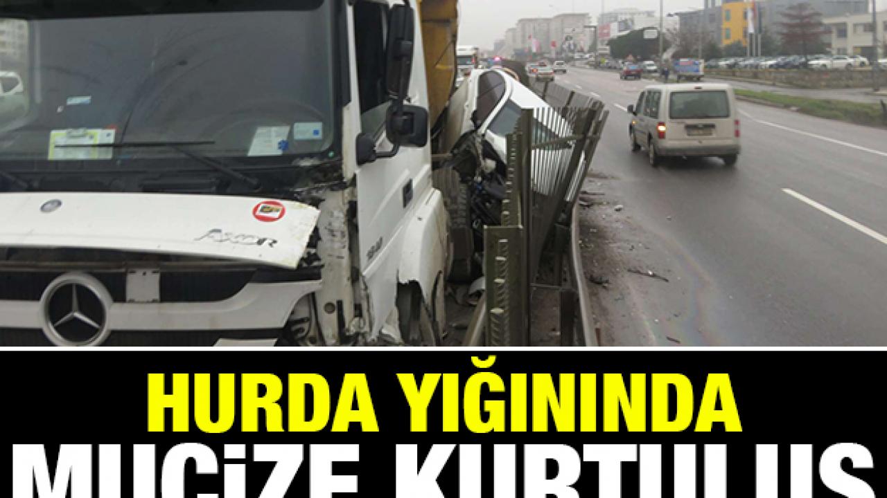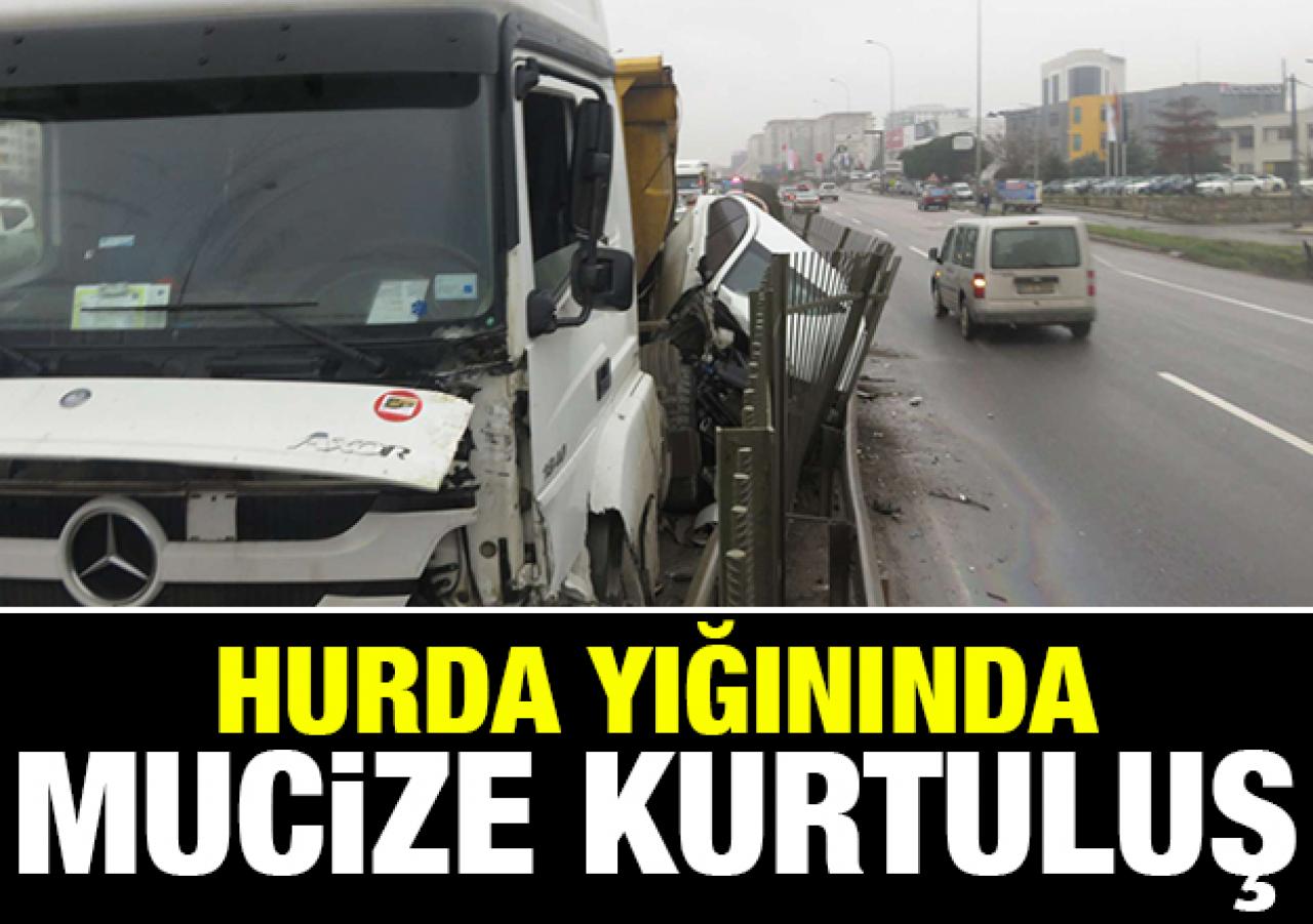 Çekmeköy Şile yolunda hafriyat kamyonunun bariyere sıkıştırdığı otomobil hurda yığınına dönerken sürücü şans eseri ölümden döndü