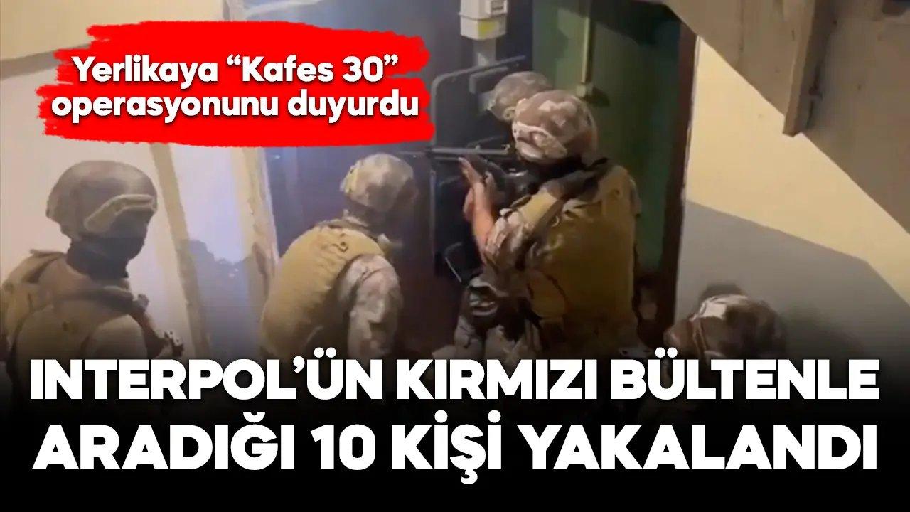 İçişleri Bakanı Ali Yerlikaya, İstanbul'da düzenlenen "Kafes-30" operasyonuyla 6 ülke tarafından haklarında Interpol tarafından kırmızı bülten ile arama kaydı bulunan 10 kişinin yakalandığını bildirdi.