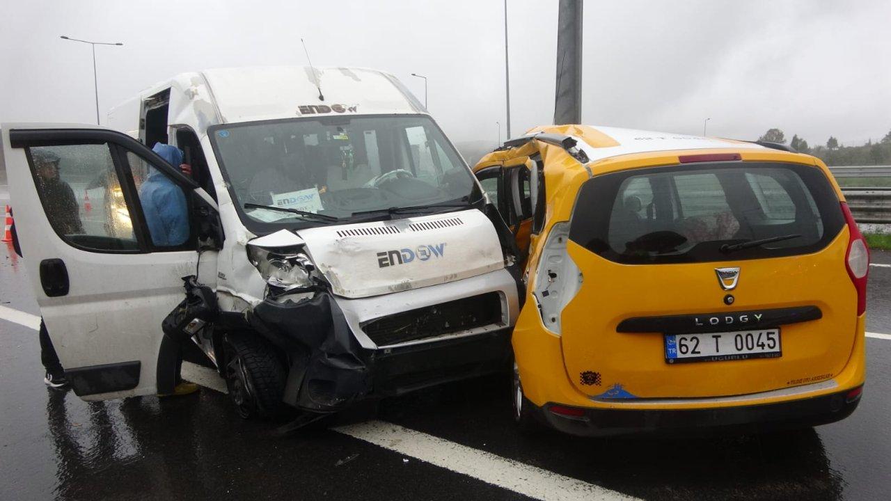 Kocaeli'de Kuzey Marmara Otoyolu'nda işçi servis minibüsü ile taksinin çarpıştığı kazada 13 kişi, yaralandı.